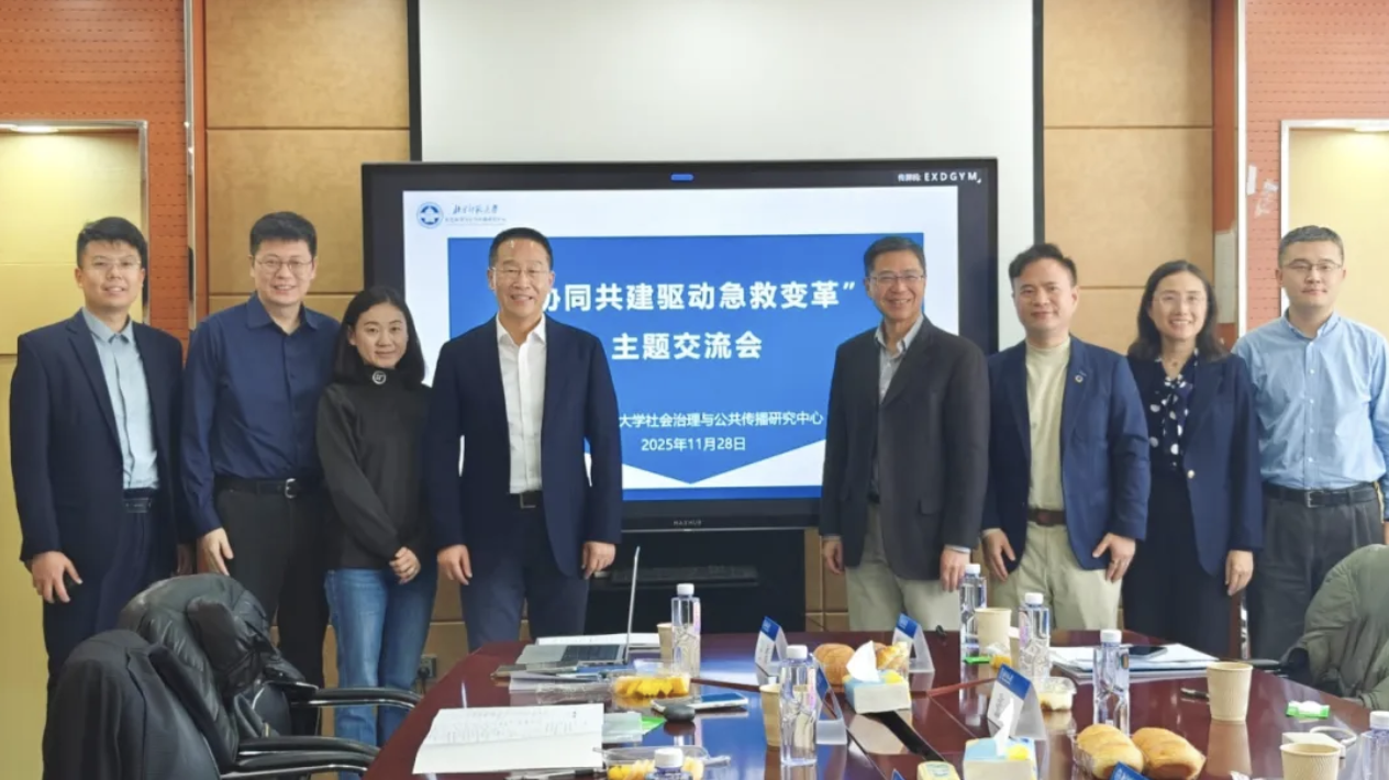 编者按:为贯彻落实党的二十届四中全会相关重要部署,提升公众对参与社会救援的认知,交流社会力量参与医疗应急救援体系建设经验,完善政企社紧密合作的院前急救制度安排,2025年11月28日上午,北京师范大学社会治理与公共传播研究中心在京举办“协同共建驱动急救变革”主题交流会。会议由研究中心主任、北京师范大学社会学院教授傅昌波主持,来自政府部门、科技企业、社会组织的有关负责人和高校师生、媒体记者等30余人参加交流会。