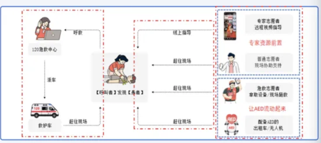 据了解,由于底子薄、起步晚等原因,我国院前急救长期存在响应滞后、资源分散、公众参与度低等问题。权威数据显示,我国每年因心脏骤停导致的死亡人数约为54.4万人,大概平均1分钟就有1人发病。然而,由于我国多数地区救护车平均响应时长超过10分钟,自动体外除颤器(AED)配置密度比较低,公众掌握急救技能的比率不足1%,导致应急救治效能长期在低位徘徊。此外,相关应急救援部门间的“信息烟囱”尚未完全打通,导致“120”指挥中心、医院等系统难以实现数据共享与高效协同;由于培训体系、法律保障尚不完善,公众普遍存在“不会救”的技能空白与“不敢救”的后顾之忧。